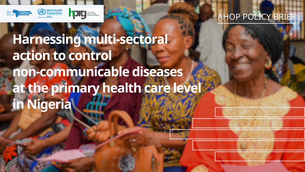 The Nigeria National Centre of the African Health Observatory Platform on Health Systems and Policies [Health Policy Research Group, University of Nigeria] has released a new policy brief summary. It is a comprehensive situational analysis that examines existing multi-sectoral policies and strategies for the prevention and management of priority non-communicable diseases (NCDs) at the primary healthcare (PHC) level; how these have been implemented; and what further actions and guidance are required from health and non-health sectors to effectively scale up efforts.